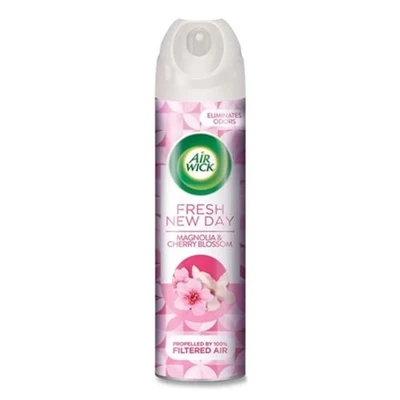 Air Wick Fresh New Day Air Freshener Magnolia And Cherry Blossom 8oz / 226g Air Wick Room Spray air freshener eliminates odors and refreshes your home within seconds, lasting up to 1 hour. Create an instant, long lasting fragrance in any space within the house or the office. This aerosol spray is propelled by 100% filtered air.