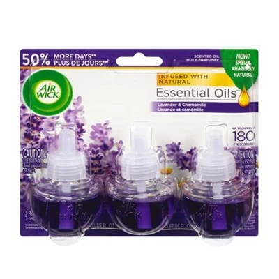 Air Wick Scented Oil Lavender And Chamomile 3 Refills Enhance your homes scent with Air Wick Scented Oil. It releases continuous fragrance so your home always smells welcoming. Air Wick Scented Oil Refills contain natural essential oils. Each Air Wick refill provides up to 45 days of continuously diffused and carefully blended fragrance throughout your home, office, or any space.