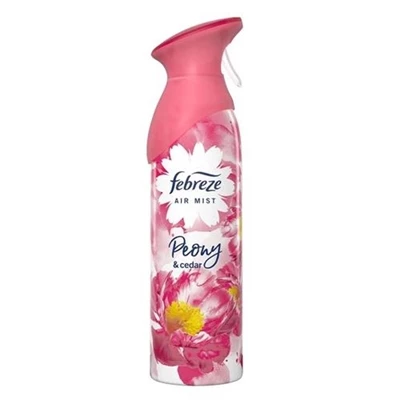 Febreze Air Mist Air Freshener Peony And Cedar 300ml Febreze Air Freshener with odor eliminator can clean away odors, leaving a light fresh fragrance. Febreze spray air fresheners are non flammable and contain 100 % natural propellant. This makes them fit for any room in the house.
