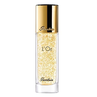 Guerlain LOr Radiance Concentrate With Pure Gold MakeUp Base 1.0oz / 30ml Guerlain lOr is an embellishing makeup base sprinkled with pure 24carat gold flakes. Like the most luxurious jewellery pieces, the precious flakes were crafted into ultrasparkling and ultrareflective particles, then dispersed in a hydrating smoothing gel. The complexion is beautified. It glows with divine and unfailing radiance. Skin is smooth, supple and satiny, ready for perfect, enhanced and longlasting makeup.