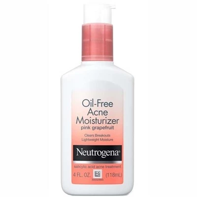 Neutrogena Oil Free Pink Grapefruit Acne Moisturizer 4oz / 118ml Our lightweight, oil free moisturizer for daily use fights breakouts while hydrating, for clear, soft skin. Pair it with your favorite acne cleanser or face scrub for a complete acne skin care routine.