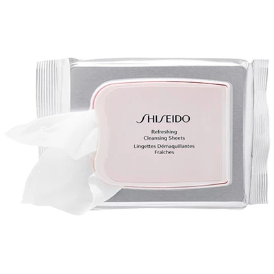 Shiseido Refreshing Cleansing Sheets 30 Ct Refreshing Cleansing Sheets by Shiseido are convenient, ultrasoft, 100% cotton cleansing sheets that maintain skins natural balance while whisking away the impurities, makeup and oil that can clog pores and lead to imperfections. Quick. Easy. Instantly refreshing.