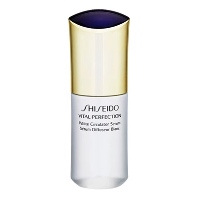 Shiseido VitalPerfection White Circulator Serum 1.3oz / 40ml An antiaging whitening serum that improves age spots, even those that seem to have emerged over time from deep within. This comprehensive solution improves a whole range of factors that detract from a clear, youthful complexion while promoting microcirculation*. Dark spots, dull, yellow tone, loss of resilience and wrinkles yield to renewed resilience, brightness and perfect clarity.