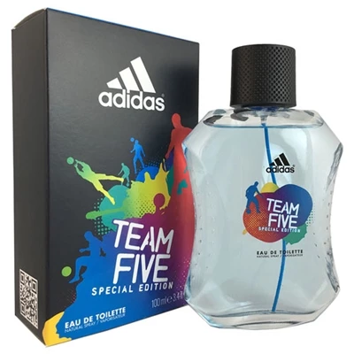 Team Five Special Edition by Adidas for Men 3.4oz Eau De Toilette Spray Adidas Team Five for men is a young and fresh scent that stars with fruity scents of melon and green apple, followed by the fresh scents of mint and sage, complete with the warm scents of amber. Now you are ready to take on the day!